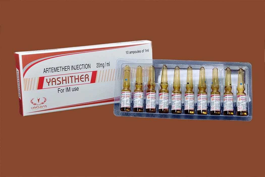 ANTI MALERIAL | 1 | Artemether Inj | 20mg | Yashither | |  | 2 | Chloroquine Phosphate Tablets | 150 MG | Yashiquin | BP |  | 3 | Artemether & Lumefantrine Tablets | 20/120 MG | Yashither | IH |  | 4 | Artemether & Lumefantrine Tablets | 40/240 | Yashither Forte | |  | ANTI INFLAMMATORY | 5 | Diclofenac Sodium Tablet | 25 MG | Yashinac 25 | |  | 6 | Ibuprofen Tablets | 400 MG | | BP |  | 7 | Diclofenac Sodium INJ | 75 MG | Yashinac | |  | 8 | Diclofenac Sodium Tablet | 50 MG | Yashinac 50 | |  | ANTI EMITIC | 9 | Dimenhydrinate Tablet | 50 MG | Yashidimenate | |  | 10 | Chlorpromazine Hydrochloride INJ | 25 MG | Yashiclozine | |  | 11 | Metoclopramide Hydrochloride INJ | 5 MG | Yashinorm | |  | CARDIOVASCULAR / HYPERTENSIVE DRUGS | 12 | Metoprolol Tartrate Tablets | 100 MG | Yashiprolol | |  | 13 | Telmisartan Tablets | 40 MG | Yashitel 40 | IH |  | 14 | Telmisartan Tablets | 80 MG | Yashitel 80 | |  | 15 | Valsartan Tablets | 80 MG | Yashivalsar 80 | IH |  |